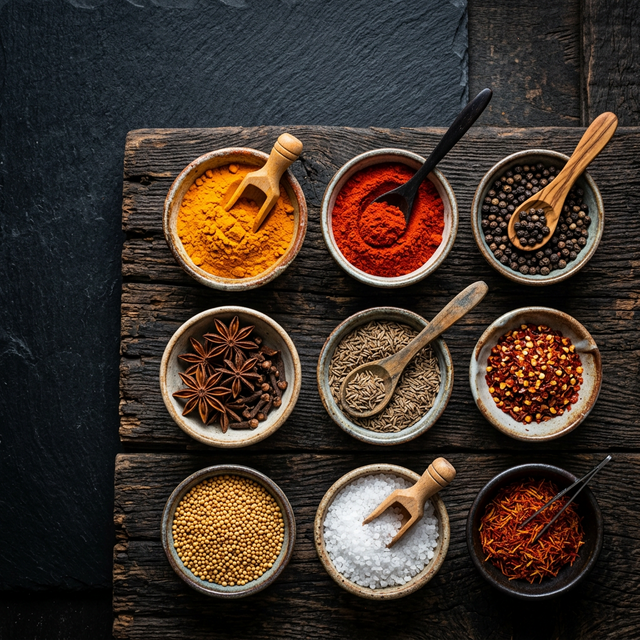 Alles über Ras el Hanout: Geschmack (Mischung (bis 30 Gewürze)), Verwendung in der Küche (Couscous, Tagine) und gesundheitliche Vorteile.